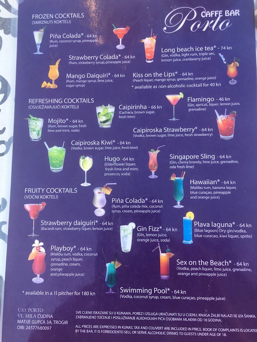 Welcome to Porto Caffe Bar, a charming café nestled in the heart of Trogir, Croatia, located at Ul. Matije Gupca 1. This vibrant spot is the perfect retreat for both locals and visitors, offering a delightful menu that highlights refreshing beverages and a friendly atmosphere.